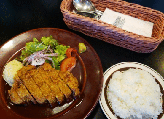 メニューには、国産牛サーロインステーキランチセットや、家庭的な味わいのハンバーグ、どこか懐かしいナポリタンなど、幅広い年代が楽しめる料理が揃います。定食屋らしい気取らない雰囲気が伝わり、家族連れはもちろん、一人でも気軽に立ち寄れる心地よさが魅力。