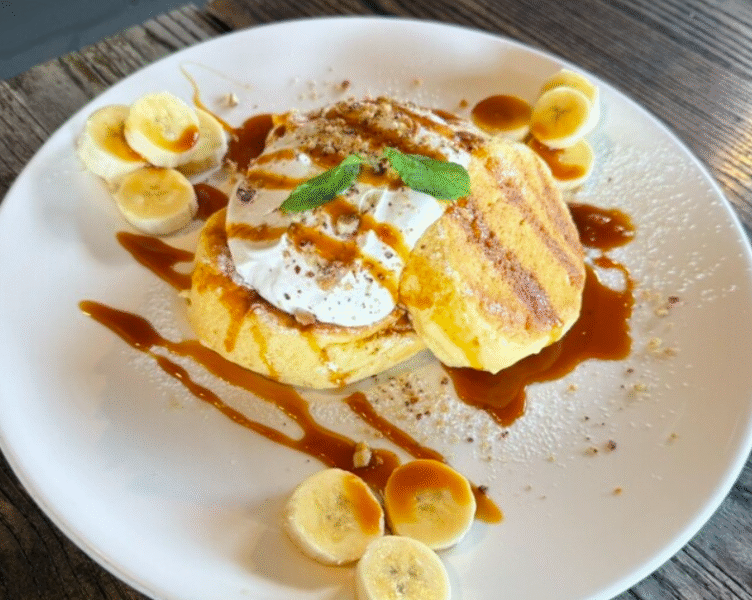メニューは、ふんわり焼き上げたパンケーキやベーコンエッグ、カルボナーラ、チョコケーキなど、カフェらしい人気ラインナップが揃っています。どの料理もシンプルながら丁寧に仕立てられており、ランチにもカフェ利用にもぴったり。落ち着いた空間でゆっくり食事やスイーツを楽しみたい時に最適です。