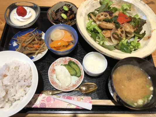さらにお子様メニューも充実しており、からあげ・オムライス・うどんの3種類が揃い、どれもりんごジュース付き。家族で訪れてもゆっくりできるのが嬉しいポイントです。手作りの飲み物(自家製あま酒や野菜ジュース)もあり、体にやさしいラインナップが揃っています。