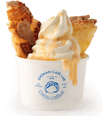 SHONAN CAFE LAB湘南シュークリームの「ソフトクリーム&シュー(カスタードソースがけ)」