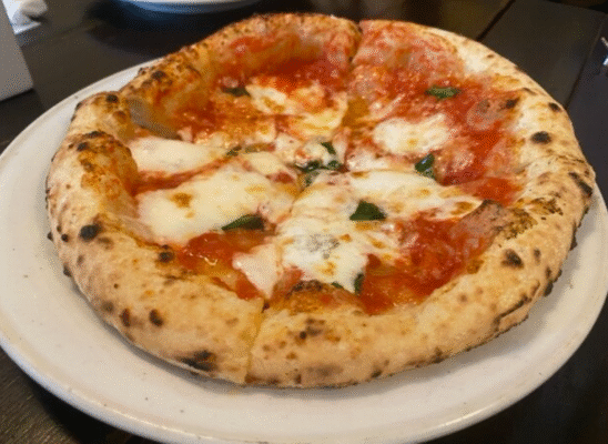 ランチではマルゲリータやナポレターナなど定番ピッツァのほか、前菜が付いたセットが楽しめ、飽きのこない構成も魅力。さらに、シンプルながら素材の良さが際立つ「カプレーゼ」も人気で、フレッシュな味わいにファンの多い一皿です。