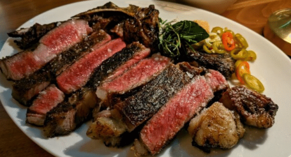 看板は、強い火入れで旨みをぎゅっと閉じ込めたグリル料理。国産ドライエイジングビーフの香ばしさは、ここならではの贅沢な味わいです。また、オーガニック野菜を中心とした前菜も評判で、素材本来の力を感じられる丁寧な一皿が揃っています。