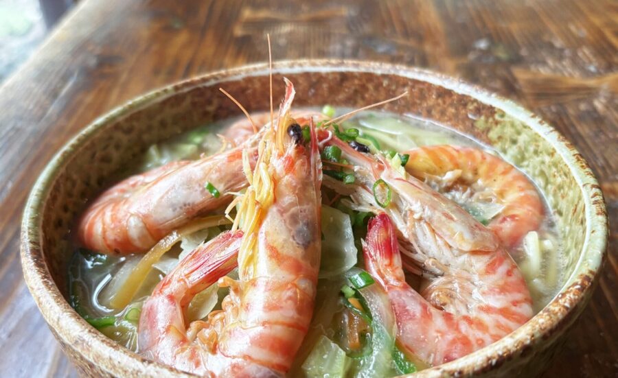 竹富島の集落中央部、喜宝院蒐集館近くにある創業50年以上の八重山そば専門店で、2025年2月にリニューアルオープンしました。店名はテリハボクを意味する島の言葉で、店内にはこの木材を使ったテーブルや椅子が並び温かみのある空間となっています。ランチでは竹富島産の車海老を5尾贅沢に使った車海老そばが看板メニューで、1日10食限定で提供され海老の旨味がスープに溶け込んだ格別の味わいが人気です。豚骨とかつおをベースにしたスープは深みがあり、柔らかく煮込んだ本ソーキを使用したソーキそばや野菜たっぷりの野菜そば、八重山そばの麺とスパイシーなカレーが調和するカレーそばなど多彩なメニューが揃います。夏季限定の冷しまぜそばやラフテーの出汁で炊いたジューシーなじゅーしーも好評で、竹富港からレンタサイクルで訪れる観光客や島民に長年愛されています。