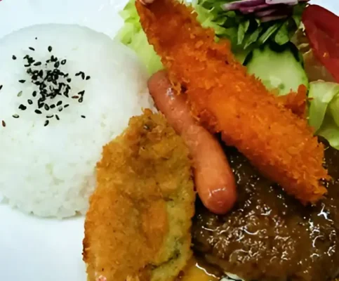 竹富島の西桟橋近くにある創業30年の老舗レストランで、大きな赤瓦の屋根と緑豊かな外観が目印です。伝統建築を改築したバリアフリーの店内は清潔感あふれる明るい雰囲気で、エアコン完備の快適な空間となっています。ランチでは一番人気のあさひAセットがおすすめで、石垣牛ハンバーグ、車海老フライ、魚フライ、ウインナーがワンプレートに盛られライスとサラダ、ミニ八重山そばが付くボリューム満点の内容です。八重山そばや軟骨ソーキそばなどの定番メニューのほか、アグー豚カレー、タコライス、島産もずくを使ったもずく丼など豊富なメニューが揃い、カレーやハンバーグもあるため子ども連れのファミリーにも人気です。昼夜営業で竹富島に宿泊する観光客にとって貴重な夕食の選択肢となっており、テキパキとした丁寧な接客も好評です。