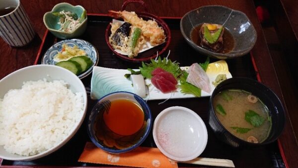 ランチでは、かつ煮定食・まぐろ丼・焼魚定食・天ぷら定食・刺身定食など、定番の和食が丁寧に仕上げられた魅力的なメニューが並びます。どれも素材の良さをしっかり引き出した味わいで、特にお刺身は店主自ら仕入れた鮮度の高いものだけを提供。優しい煮付けや揚げたて天ぷらも評判です。