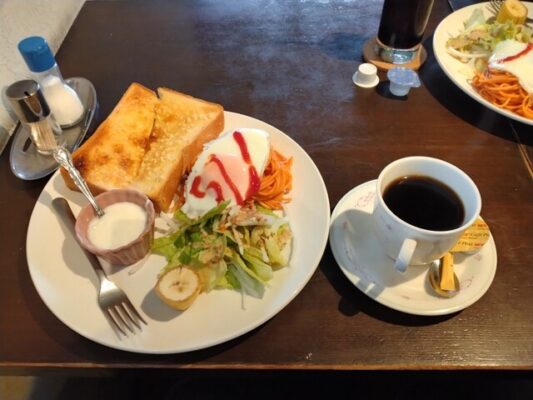姫路のご当地グルメとして知られる「アーモンドバター」発祥の店として有名な「カフェドムッシュ 姫路店」は、姫路を訪れたなら一度は体験したいボリューム満点のカフェです。郊外に位置していますが、その名物メニューを求めて多くの人が訪れます。名物のアーモンドトーストは、たっぷり塗られた自家製アーモンドバターの香ばしさと優しい甘さが特徴で、モーニングやブランチにぴったりです。また、洋食メニューも豊富で、パスタやピラフなど、どれも驚くほどボリューミーで、地元の食文化を感じさせてくれます。開放感のある広々とした店内で、姫路ならではのユニークなグルメ体験を楽しみたい方におすすめのカフェです。