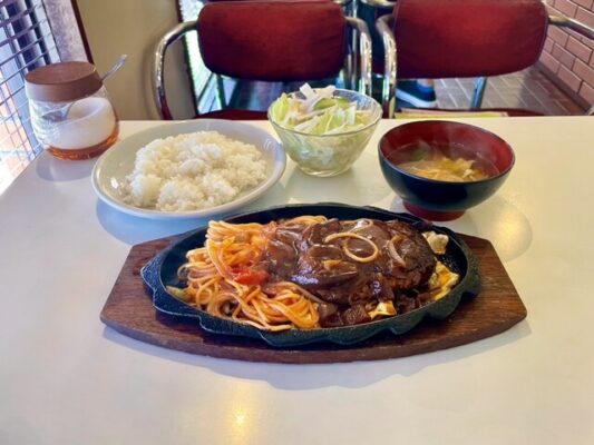 中河原駅から徒歩1分、鎌倉街道沿いにあるレトロな喫茶店です。1982年オープンの老舗で、かつて大映テレビのスタジオが近くにあった頃には、「高校聖夜物語」や「スクール☆ウォーズ」などのドラマのロケ地としても使われました。緑の屋根が目印のレンガ造りのビルにあり、深紅の椅子やブラウンのソファが並ぶ店内は、どこか懐かしい昭和の雰囲気に包まれています。朝8時前から営業しており、モーニングやランチメニューも充実しています。ナポリタンやハンバーグなどの洋食メニューが人気で、喫茶店でありながら料理のクオリティも高いお店です。大きな窓から差し込む光と観葉植物のグリーンが心地よく、ゆっくりと時間を過ごせます。