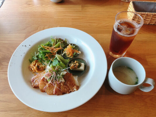 ランチは「魚で出汁をとったカレーライス」「桜島鶏のバターチキンカレー」「燻製醤油の卵かけご飯」など、こだわりの味が揃い、それぞれ素材の旨みがしっかりと引き立つ満足感のある料理ばかり。日替わりメニューもあり、訪れるたびに新しい美味しさに出会えるのも嬉しいポイントです。