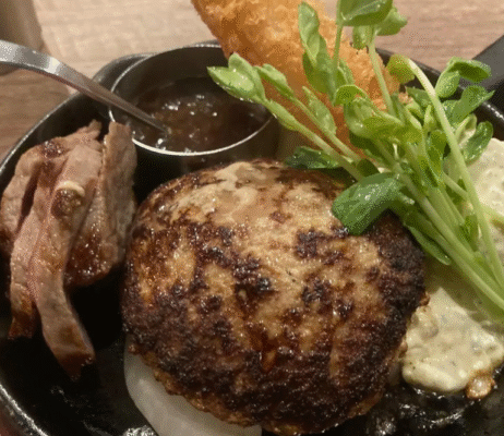大阪府茨木市にある「津の田ミート 茨木店」は、肉料理を思い切り楽しみたい日にぴったりの人気洋食店。看板メニューのハンバーグは肉汁たっぷりで、ふっくらジューシーな食感が魅力。特に名物のデミグラスハンバーグは、深いコクのある自家製ソースがからみ、思わず笑顔になる美味しさです。