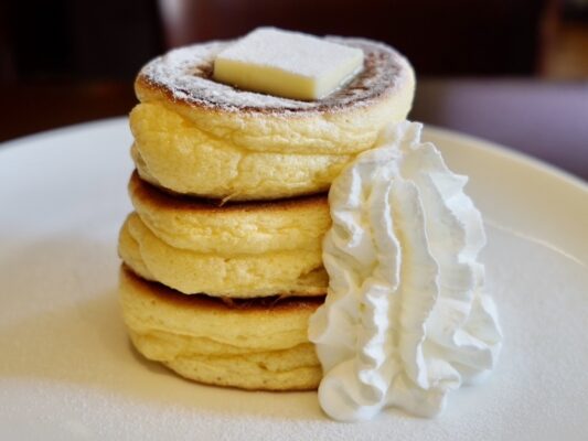 浜松市中央区板屋町にある「La Pullman Caffe'(ラ プルマン カフェ)」は、半熟とろけるパンケーキ専門店として有名なカフェです。スプーンですくって食べるシュワシュワとろとろの新感覚パンケーキは、ふわふわを通り越して口の中で儚く溶けていく独特の食感が特徴です。注文を受けてから鉄板でじっくりと焼き上げるため、できたての美味しさを楽しめます。季節のフルーツを使ったパンケーキメニューも豊富で、浜松産のブルーベリーや完熟マンゴーなど、旬の味覚を楽しむことができます。平日は朝8時から営業しているため、朝からパンケーキを楽しみたい方にも最適です。浜松駅から徒歩圏内で、ジャズが流れる落ち着いた雰囲気の中、極上のパンケーキ体験ができる浜松の人気カフェです。