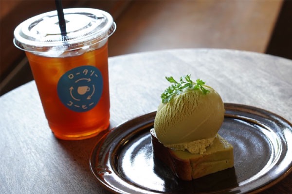 熊本市中央区本山町にあるROTARY COFFEEは、築60年以上の木造建築を改装したアットホームな雰囲気のコーヒーショップです。祇園橋駅から徒歩約11分、熊本駅からも近い立地で、自家焙煎のスペシャルティコーヒーと手作りスイーツが魅力です。姉妹店のLOBBY by ROTARY COFFEEで焙煎された豆を使用し、ブラジル、コスタリカ、エチオピアなど世界各国の豆から選べます。特に人気なのがピスタチオチーズケーキに自家製アイスをトッピングしたデザートで、フレーバーは好きなものを選ぶことができます。暑い時期限定のコーヒーゼリーラテフロートや季節のジュースなど、ドリンクメニューも豊富です。店内は1階と2階に分かれ、2階は靴を脱いでくつろげるスペースになっています。テイクアウトも可能なので、散策のお供にもおすすめです。