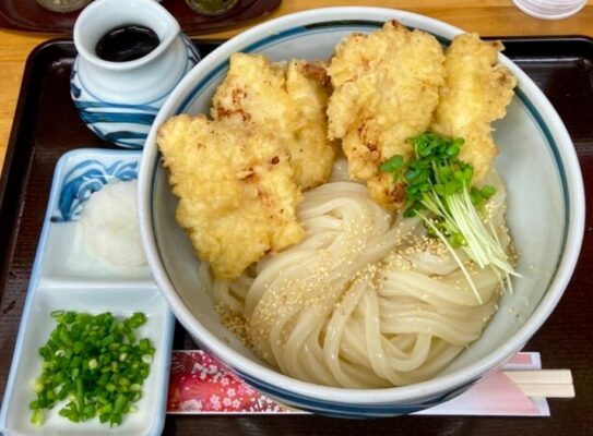 京阪本線滝井駅から徒歩1分の「手打ちうどん 紅屋」は、食べログうどんWEST百名店に複数回選出されている実力派の手打ちうどん専門店です。店主は難波千日前の名店「釜たけうどん」で修行を積んだ本格派で、国産小麦と岩塩を使用した麺は足踏みと寝かせを繰り返し20時間以上かけて丁寧に仕上げています。一番人気の鶏天カレーうどんは、煮干しや昆布、節系の出汁にスパイスを加えたとろみのあるカレー出汁が絶品で、但馬鶏の胸肉を使ったサクサクの鶏天との相性も抜群です。ランチタイムは1000円前後で本格手打ちうどんを堪能でき、行列ができるほどの人気ぶりです。店頭での記帳制となっているため、時間に余裕を持った来店がおすすめです。