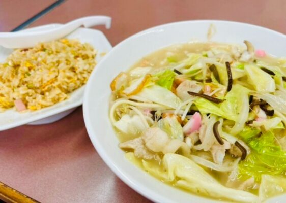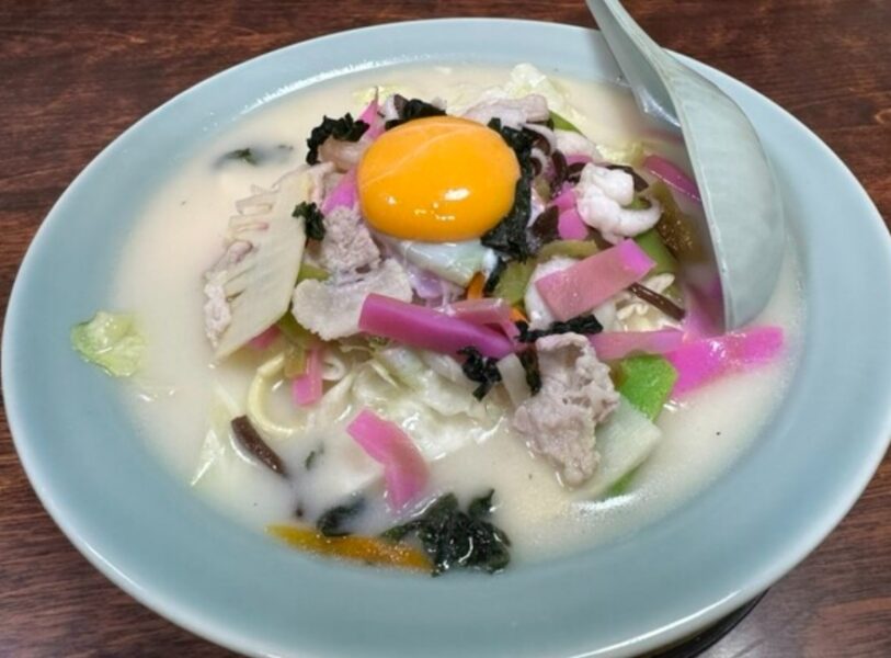 雲仙市・小浜町のマリーナ近くに位置する「食楽 大盛」は、地元で「デカ盛りちゃんぽん」の聖地として知られる人気食堂です。具材が山盛りでスープが隠れるほどのボリュームが自慢で、たっぷりの島原野菜と豚肉、海鮮が織りなす甘みとコクが絶妙に調和。麺は中太でスープをしっかり絡め、一度食べたら忘れられない満足感です。特にランチタイムの大盛りちゃんぽんは、普通盛でも十分な量なのに大盛りはまさに圧巻。熱々のスープに浸かった野菜のシャキシャキ感と、たっぷりの海老やイカの旨味が口いっぱいに広がります。ライスを頼んで残ったスープで雑炊にする常連技もおすすめ。店内は明るく気さくな雰囲気で、家族連れや観光客でいつも賑わっています。島鉄小浜駅から徒歩約8分、雲仙温泉から車で15分ほど、無料駐車場も完備しており、雲仙観光の腹ごしらえにぴったりの、笑顔になれる長崎ちゃんぽんの名店です。