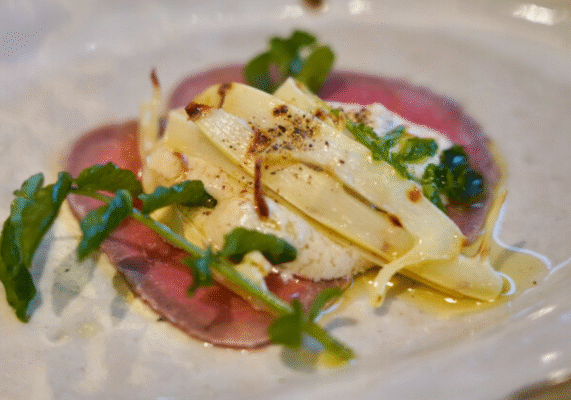 雲仙市・千々石町の小高い丘に佇む「ロカンダ デル カンポ」は、橘湾を望む絶景ロケーションのイタリアンです。地元食材を活かした本格派で、ナポリ風ピッツァや自家製パスタが自慢。薪窯で焼き上げるピッツァは、外はカリッと中はふんわり、トマトソースの酸味とチーズのコクが絶妙に溶け合います。店内はスタイリッシュな一軒家で、窓辺の席から広がる田園と海の景色に心奪われます。ランチタイムのおすすめは「地元食材ランチセット」で、前菜盛り合わせからメインのパスタやピッツァ、デザートまでが揃い、雲仙の恵みをイタリアンで味わえる贅沢な内容。家族連れも歓迎の禁煙席がゆったり。島鉄雲仙駅から車で約10分、専用駐車場7台完備でアクセスしやすく、雲仙温泉観光の優雅なランチにぴったりの、日常を特別に変える名店です。