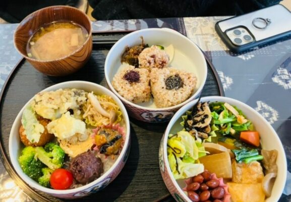 加賀市片山津町にある玄米と自然食をコンセプトにしたカフェレストランです。石川県産のコシヒカリに小豆と黒米をブレンドしたオリジナルの玄気米を使用しており、甘みのある玄米ご飯が味わえます。ランチでは九谷焼の三段重に色とりどりの料理が盛り付けられた「ひなか箱膳」や、野菜のおかずとお味噌汁がセットになった「玄米和膳」が人気です。お肉を使わないコロッケなど体に優しいメニューが揃い、ご飯のおかわりもできるのが嬉しいポイントです。店内では自然食品や玄米を使ったお菓子、卵や小麦不使用のスイーツなども販売しています。JR動橋駅が最寄りで、加賀温泉駅からの周遊バス「キャンバス」でもアクセス可能です。駐車場も完備しています。