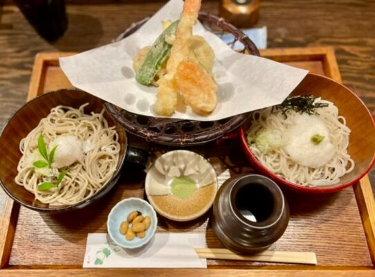 加賀市・山代温泉の九谷焼通り沿いに佇む「手打ちそば いし川」は、北海道産そば粉と加賀の伏流水で打つ香り高い十割そばが自慢の名店です。店主が毎朝丁寧に手打ちする麺は、細めながらしっかりとしたコシと喉ごしが絶妙で、そばの風味が口いっぱいに広がります。天ぷらは地元野菜と海老がサクッと軽やかで、塩でいただくのがおすすめ。ランチタイムのおすすめは「おろしそばと天ぷらのセット」で、爽やかな大根おろしがそばを引き立て、季節の野菜天ぷらが彩りを添える贅沢な内容。冷たいつゆでさっぱりといただけば、温泉街の熱い体もすっと落ち着きます。店内は落ち着いた和空間で、カウンターでは店主の包丁さばきを間近に。山代温泉総湯から徒歩約5分、大聖寺ICからも車で15分ほど、専用駐車場も完備しているので、湯巡りの合間に立ち寄りやすい、加賀のそば文化を味わえる隠れ家的名店です。