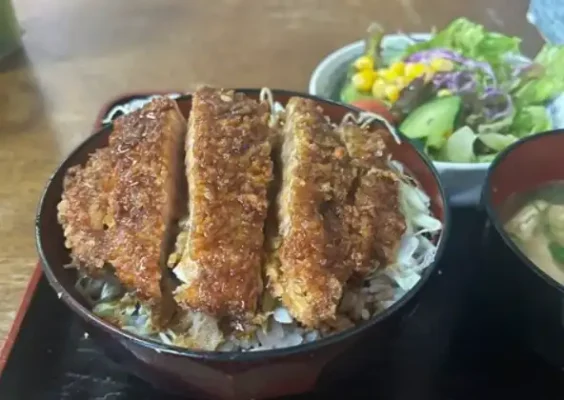 昭和2年創業、信濃大町で長く愛され続ける老舗のとんかつ専門店です。名物の「ソースかつ丼」は、分厚くカットした豚肉をサクサクに揚げ、千切りキャベツを敷いたご飯の上にたっぷりとのせ、創業以来受け継がれてきた自家製の甘辛ソースをかけた逸品です。丼からはみ出るほどボリューム満点のとんかつは、そのインパクトある見た目と確かな味わいで、立山黒部アルペンルートを訪れる観光客や登山帰りの方々からも絶大な支持を集めています。ランチには定番のソースかつ丼のほか、味噌かつ丼やかつカレー、とんかつ定食なども揃います。具材がたっぷり入った味噌汁も好評です。昭和の雰囲気が漂うレトロな店内で、伝統の味をぜひご堪能ください。JR大糸線信濃大町駅から徒歩約3分、駐車場も完備しています。