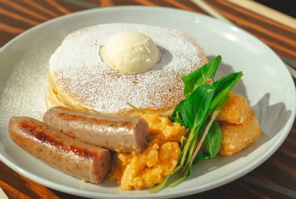 2024年7月にオープンした青木湖畔のカフェレストランです。「ローカルモダンコンフォート」をコンセプトに、地元の生産者とのつながりを大切にしながら信州の食材をふんだんに使ったメニューを提供しています。ランチには白馬ハムのソーセージやスクランブルエッグが付いたバターミルクパンケーキのコンボプレートが人気で、野沢菜を使ったジェノベーゼニョッキなど郷土の味を現代風にアレンジした料理も楽しめます。店内は大きな窓から湖を一望でき、テラス席では水面を間近に感じながら非日常的なひとときを過ごせます。SUPやカヤックなど湖上アクティビティとのセットプランも充実しており、併設の絶景サウナも好評です。JR大糸線簗場駅から徒歩約25分、白馬駅から車で約15分の場所にあります。