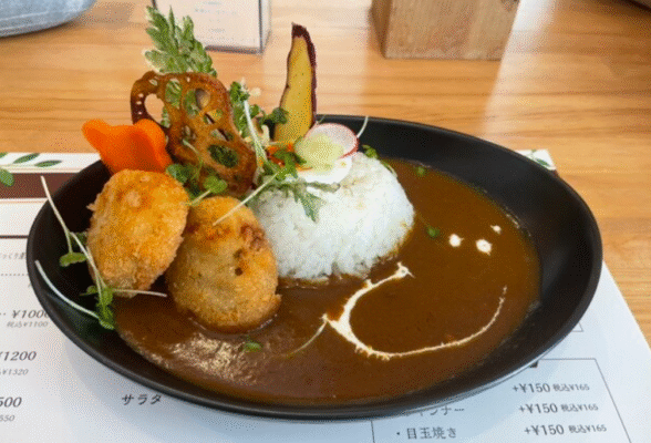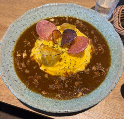日立駅から徒歩約10分の場所にあるCafe de chouchouは、外国のカフェのようなおしゃれな外観が目を引く人気店です。店内はモダンでありながら温かみのある雰囲気で、ソファー席からカウンター席まで用意されており、一人でもグループでもゆったりと過ごせます。名物は直径35cmの大皿に盛られた週替わりランチプレート。旬の食材を使った多彩な料理が並び、エディブルフラワーで彩られた見た目も華やかな一皿は、女性にも男性にも大満足のボリュームです。またスキレットで提供される大きなパンケーキも人気メニュー。メレンゲをたっぷり使ったふわふわ食感で、最後まで熱々のままいただけます。金曜・土曜には夜カフェ&バータイムも営業しており、夜の時間帯も楽しめるのが魅力です。