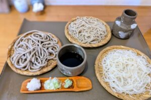 北海道産の玄そばを中心に、収穫から手打ちまで低温管理されたそば粉を石臼で挽き、丁寧に打たれる手打ち蕎麦が自慢の「石挽き蕎麦 庵」。JR高崎線籠原駅から車で15分ほどの郊外にあり、広々とした駐車場と落ち着いた雰囲気を持つ一軒家レストランです。特に看板メニューの「生粉打そば」(十割そば)は、香り、味わい、のどごし全てにおいて高い評価を得ており、まずは塩でいただくことを推奨されています。昼の営業のみとなっており、本格的な十割蕎麦や二八蕎麦の他、地元熊谷産のネギや大和芋といった野菜の天ぷらも非常に人気で、これらを合わせた天もりそばもランチに最適です。女性客のリピーターが多いことからも、その繊細で丁寧な仕事ぶりがうかがえる、熊谷の隠れた名店です。
