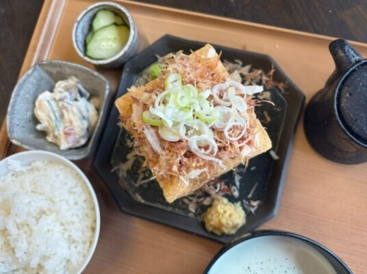 JR高麗川駅から徒歩約10分の「豆腐厨房 日高楡木店」は、北海道産大豆を使った濃厚な豆乳で寄せた豆腐料理や、ヘルシーな総菜・スイーツを楽しめる専門店です。入口を入ると販売店があり、奥にあるイートインスペースで食事ができます。こちらの最大の魅力は、新鮮な豆腐と大豆を活かした健康的なメニューの数々です。ランチタイムには、カリカリでジューシーな生揚げが入った「豆腐屋さんの生揚げ定食」や、豆腐を贅沢に使った麻婆豆腐などが人気で、地元のB級グルメである「高麗鍋」の豆乳うどんも提供されています。豆腐の唐揚げや豆乳ソフトクリームなどのテイクアウト品も充実しており、食事を終えた後にぜひ試していただきたい逸品です。身体に優しい豆腐料理を気軽に楽しめる、日高市で人気のスポットです。