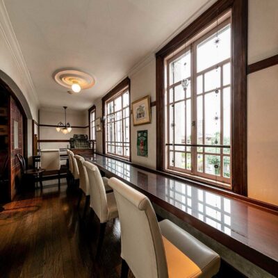 川越一番街商店街の仲町にある川越アートカフェ エレバートは、1915年(大正4年)に建てられた川越市指定有形文化財「田中家住宅」をリノベーションしたカフェです。川越に残る洋風建築として最古のもので、蔵造りの建物が並ぶ中でひときわ目を引くモダンな外観が特徴。高い天井に時を重ねた飴色の梁がめぐらされた店内は、黒々とした太い梁が縦横に巡り、レトロなガラス窓からは歴史的な街並みを眺められます。インドネシアのトラジャ地方のみで産出される希少な「トアルコ トラジャ」を使用したコーヒーは、キャラメルのような香ばしさが特徴。また川越で生まれたクラフトビールCOEDOの樽生6種全てが揃う川越市内で2軒のうちの1軒で、自家製さつまいもプリンも人気です。川越観光の休憩に、文化財の特別な空間でゆっくりとした時間を過ごせます。