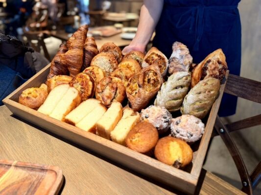 中目黒駅から徒歩約6分、山手通り沿いに佇む「flour+water 中目黒」は、行列が絶えない大人気のベーカリーカフェです。店名の「flour+water(小麦と水)」が示す通り、シンプルな素材にこだわり抜いた本格的なパンが自慢。店内には天井から吊るされたドライフラワーが彩りを添え、シックで洗練された空間が広がっています。看板メニューは1日3回提供される「ブランチセット」で、焼きたてのパン4種類にサラダやスープ、フリードリンクが付いて1800円とコスパも抜群。フランス産AOPバターを使用した「天使のクロワッサン」は午前中に売り切れることも多い人気商品です。10時からのブランチタイムには整理券が配られ、15分ごとに10種類の厳選紅茶がサーブされるという贅沢なサービスも。16時以降はイタリアンバル「DRA7」に変身し、薪窯で焼き上げるピザも楽しめます。朝9時からパン販売、10時からブランチと、時間帯によって異なる楽しみ方ができるのも魅力です。