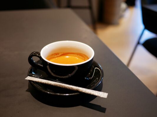 目黒駅から徒歩約10分、目黒通り沿いに位置する「Cafe & Bar Keiga no Toki」は、食材の可能性を追求するユニークなコンセプトカフェです。最大の特徴は、タイ北部チェンライ産の希少豆を使用した「白いコーヒー」。まるでお茶のような淡い色合いで、特別な焙煎方法により生まれるまろやかな味わいが楽しめます。このコーヒーはうま味成分が豊富で料理にも使えるため、17時以降のバータイムには「白いコーヒー出汁のおでん」という斬新なメニューも登場。コーヒーの香ばしさが隠し味として効いた、優しい味わいのおでんは一度食べたら忘れられない逸品です。約100種類にも及ぶドリンクメニューには、コーヒーのほか紅茶、日本茶、ノンカフェインティー、ワイン、カクテルなど多彩なラインナップが並びます。黒で統一されたシンプルなコンクリート調の店内は、太陽光を再現した特別な照明が各席に当たるよう設計されており、料理やドリンクをより美しく引き立てます。