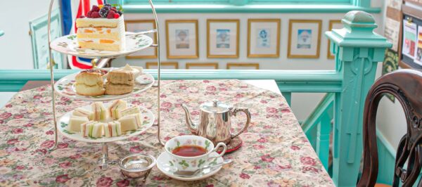 大阪・北浜にある「北浜レトロ」は、明治45年(1912年)に建てられた洋館を利用した、大阪を代表するレトロカフェです。国の登録有形文化財にも指定されているレンガ造りの建物の扉を開けると、そこには100年以上前にタイムスリップしたかのようなクラシカルな空間が広がります。2階のティールームでは、土佐堀川越しに中之島公園のバラ園が見渡せ、アンティークの調度品やステンドグラス、優美な照明が英国のティーサロンそのものです。こちらのお店は特に紅茶が有名で、世界各国から取り寄せた40種類以上の茶葉を使用した本格的なアフタヌーンティーが楽しめます。スコーンやサンドイッチ、ケーキなどが美しく盛られたティーセットは、大阪でも屈指のインスタ映えスポットとして人気です。北浜駅から徒歩1分という好立地で、大阪観光では外せない名店です。