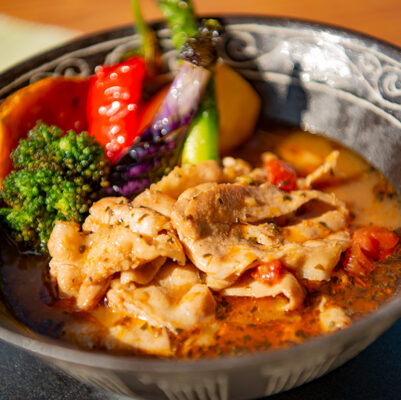 洞爺で本格的なスープカレーが楽しめるSoup Curry HLAHALは、北海道グルメを代表するスープカレー専門店です。洞爺エリアでスープカレーランチを味わいたい方におすすめで、スパイスの効いた本格的な味わいが特徴。Soup Curry HLAHALのスープカレーは、野菜や肉がたっぷり入ったサラサラのスープと、スパイスの香りが食欲をそそります。洞爺でスパイシーなランチを求める方にぴったりです。辛さは選べるため、辛いものが苦手な方でも安心して楽しめます。具材も豊富で、チキンや野菜、シーフードなど、様々なバリエーションから選べます。店内はカジュアルな雰囲気で、一人でも気軽に利用できます。HLAHALという個性的な店名も印象的。洞爺で本格的なスープカレーを味わいたい方は、Soup Curry HLAHALへ。北海道ならではのグルメを堪能できます。