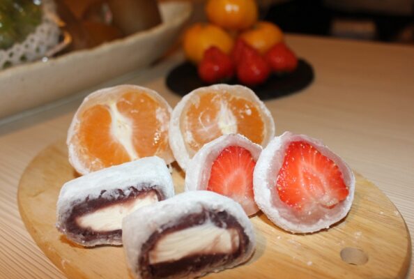 心斎橋で話題のフルーツ大福専門店、夜もふるーつ大福では、新鮮ないちごを丸ごと使った贅沢な大福が味わえます。柔らかなお餅の中には、甘酸っぱいいちごと上品な甘さの白あんが絶妙にマッチ。一口食べれば、いちごのジューシーさとお餅のもちもち食感が口の中で広がります。季節によって旬のフルーツを使用した様々な大福が登場するのも楽しみの一つ。店名の通り夜遅くまで営業しているため、心斎橋での食事やお酒の後のデザートとしても人気です。見た目も美しく、SNS映えすること間違いなし。和と洋が融合した新感覚のスイーツは、心斎橋の食べ歩きグルメの中でも特に女性に支持されています。