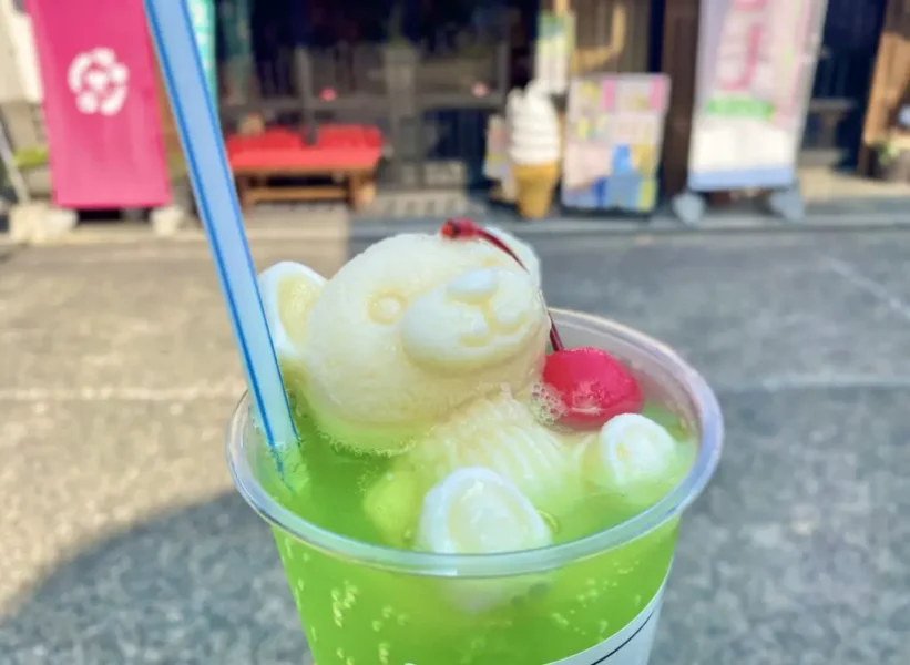 倉敷美観地区で話題を集めているのが、和平治商店の「ひょっこりくまさんクリームソーダ」です。このユニークなドリンクは、カラフルなクリームソーダの上に可愛らしいくまさんのアイスがちょこんと乗っている、SNS映え抜群の一品。倉敷の街を歩きながらこのフォトジェニックなドリンクを持てば、注目されること間違いなしです。鮮やかなソーダとクリーミーなアイスの組み合わせは、見た目だけでなく味も抜群で、暑い季節の倉敷観光には特におすすめ。和平治商店は、倉敷の伝統を大切にしながらも、新しい試みに挑戦し続けるお店として知られています。ひょっこりくまさんクリームソーダは季節によって色やデザインが変わることもあり、何度訪れても新しい楽しみがあります。倉敷美観地区散策の休憩タイムに、ぜひ立ち寄ってみてください。