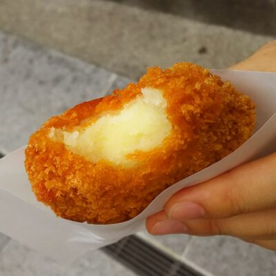 全国コロッケコンクールで見事金賞を受賞した「金賞コロッケ」は、倉敷でも大人気の食べ歩きグルメです。倉敷店では、揚げたてのアツアツのコロッケをその場で味わうことができ、そのサクサクの衣と、中のホクホクのじゃがいもの絶妙なバランスは、まさに金賞の名に恥じない美味しさ。倉敷美観地区を散策する観光客の間では、「倉敷に来たら必ず食べる」という定番グルメとして定着しています。シンプルながらも素材の味を最大限に引き出した金賞コロッケは、一度食べたら病みつきになること間違いなし。倉敷の街歩きの途中、ちょっと小腹が空いた時にぴったりのボリューム感です。熱々のコロッケを頬張りながら倉敷の街並みを楽しむ贅沢な時間を、ぜひ体験してみてください。お値段もリーズナブルで、何個でも食べたくなる魅力的な一品です。