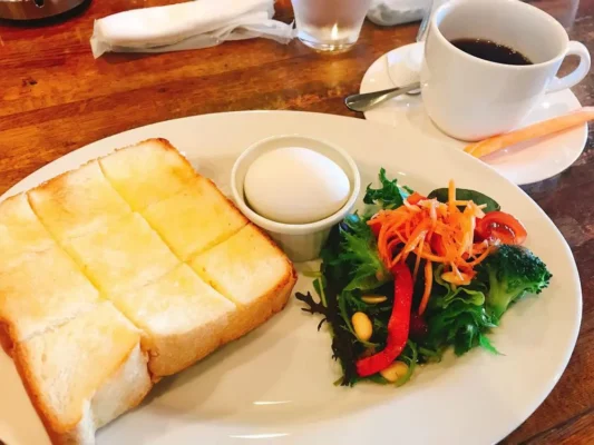 メニューは厚焼きトーストやサンドウィッチなどの軽食が中心で、どれもシンプルで親しみやすいラインナップ。喫茶店らしい素朴さと居心地の良さが魅力で、コーヒーと合わせてゆったりくつろぎたい方にぴったりです。