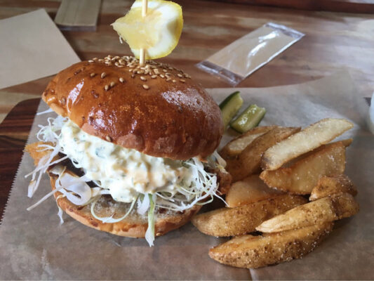 看板メニューは、丁寧に仕上げられたハンバーガー。特に「ミルフィーユポークカツバーガーセット」や「マザルバハンバーガーセット」が人気で、ボリュームがありながらも素材の良さが引き立つ満足度の高い一品です。食事のクオリティはもちろん、自然と調和したロケーションも相まって、訪れる人々を魅了し続けています。