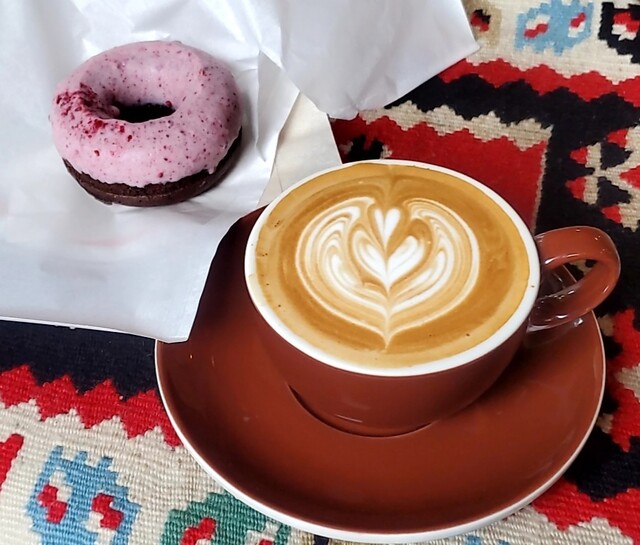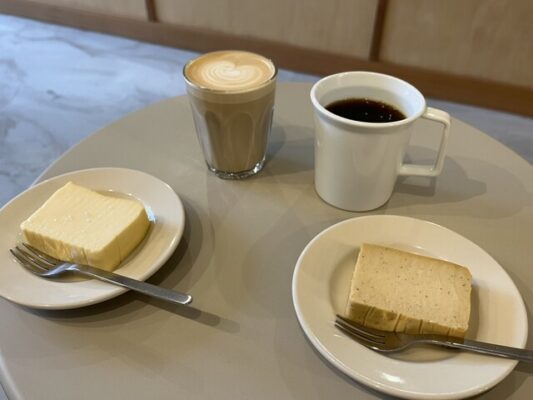 メニューはコーヒーを中心にシンプルながらこだわりが感じられ、丁寧に淹れられたカフェラテはオーツミルクへの変更も可能。香り豊かでやさしい味わいが人気です。焼き菓子では「バナナパウンド」が好評で、コーヒーとの相性も抜群。軽くつまめるスイーツが揃っているので、ちょっとだけ甘いものを食べたい時にも利用しやすい一軒です。