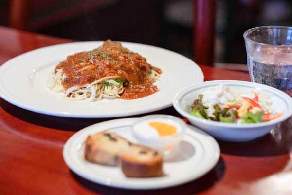 人気の「オムライス デミグラスソース(サラダ・ドリンク・デザート付き)」は、しっかりと満足感のあるセットで好評。ほかにも「ランチセット(サラダ&スープ&ドリンク)」があり、バランスよく楽しめるメニュー構成になっています。また、黒板には「週替りパスタLunch」や「ご飯ものLunch」など、日替わりで内容が変わる料理が並び、訪れるタイミングで違った楽しみがあるのも魅力です。