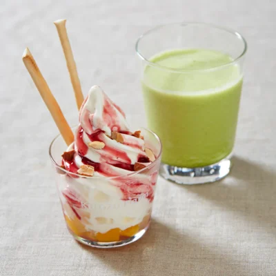 人気メニューの「ベリーと黒酢のコンポート」は、黒酢のまろやかな酸味とベリーの甘さが心地よく重なり、爽やかな後味が楽しめる一品。季節感のある「桃のスムージー」も好評で、黒酢を使ったドリンクが豊富にそろっています。ほかにも、黒酢を使ったドレッシングやジャム、アイスクリームなど、気軽に楽しめる商品が充実し、イートインでもテイクアウトでも利用しやすいのが嬉しいポイント。