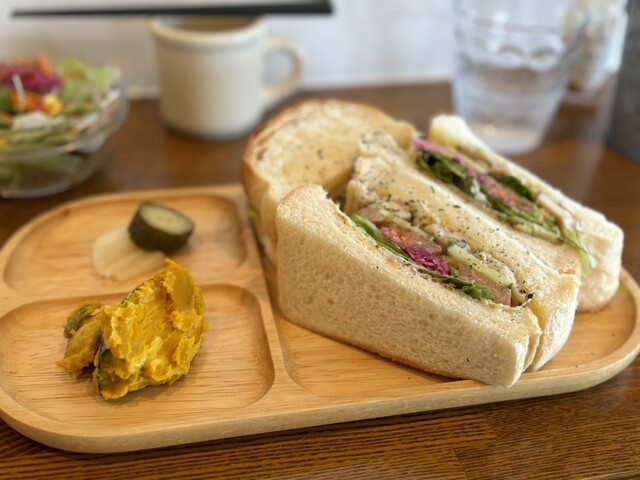 「トルティーヤランチ」や「BLTサンドウィッチ」といった人気メニューに加え、ミニケーキやフレンチトーストなどのスイーツも充実。ドリンクもコーヒー・紅茶・ジュースなどが揃い、ランチセットに付けられるのも嬉しいポイント。落ち着いた空間で、友人とのランチやひとり時間にも使いやすい居心地の良い一軒です。