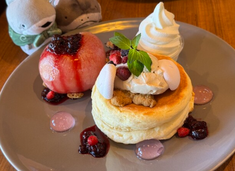 「湘南フルーツクラフト」は、季節のフルーツを主役にしたパンケーキが楽しめる人気カフェ。写真にあるように、季節限定のパンケーキや、りんごを使ったメニュー、ふわふわ食感が特徴の「ひこうき雲パンケーキ」など、バリエーション豊富な一皿が並びます。スタンダードなタイプから、ベリーやキャラメルを組み合わせた華やかなパンケーキまで揃い、甘いもの好きにはたまらないラインナップ。