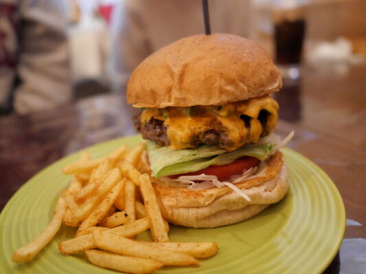 「コーナーゲートバーガー」は、大仙市大曲丸の内町にある人気ハンバーガー店。しっかり食べ応えのあるバーガーが揃い、クラシックチーズバーガーやフルバーガーなどの定番メニューが多くの人に支持されています。ロコモコやタコライスといったご飯ものも提供しており、ハンバーガー以外の選択肢があるのも嬉しいポイントです。