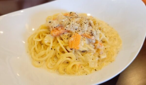 人気メニューとして挙がっているのは、まろやかな味わいが魅力の「サーモンクリームソースのパスタ」や、ランチセットに付くサラダなど。素材の味を大切にした優しい料理が楽しめ、普段使いにも、気分転換のカフェタイムにもぴったりです。
