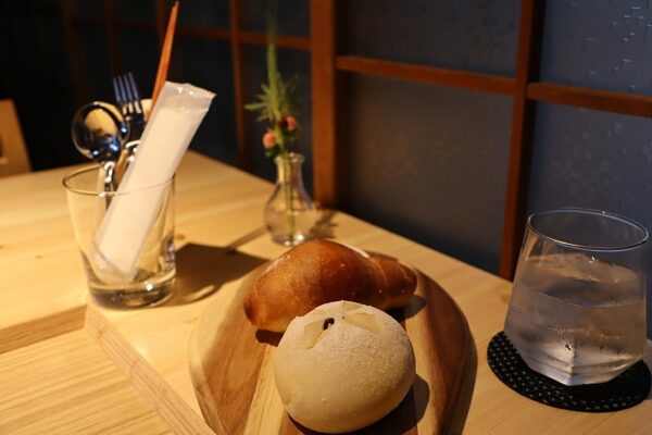 ランチは、お肉プレート(深川鶏と野菜の黒酢炒め)と、お魚プレート(魚春の味噌ごまソース)の2種類から選べ、りんごドレッシングのサラダや人参とズッキーニのポタージュ、選べるパン2つがセットになった満足感のある内容。家庭的な温かさが感じられるやさしい味わいで、ゆったりとした時間が流れます。