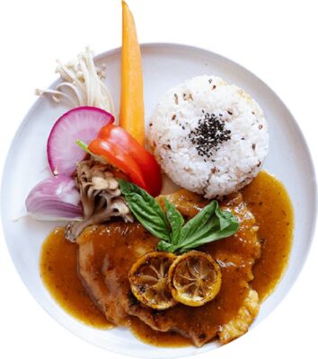 注目のメニューには、香り豊かな「ひにけにブレンド」や「湯田温泉ブレンド」といったドリップコーヒーが並び、好みに合わせて選べるのが嬉しいポイント。ランチタイムには、色とりどりの野菜が添えられたプレートやグリーンカレー、シフォンケーキなど、思わず気分が上がるような料理が楽しめます。黒い大きな丸皿に盛りつけられた油淋鶏のランチプレートは見た目も華やかで、ゆったりとしたカフェ時間にぴったり。