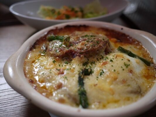 人気の〈ジェノバ風シーフードドリア〉や〈ジェノバ風ドリア〉は、口コミでも評判のメニュー。カフェながらしっかり満足できる味わいで、食事目的で訪れる人も多い一軒です。また、ケーキやコーヒーも美味しいと好評で、食後のひと息にもぴったり。丁寧に作られた甘いスイーツと香り高いコーヒーを楽しみながら、時間を忘れて過ごしたくなる心地よさがあります。