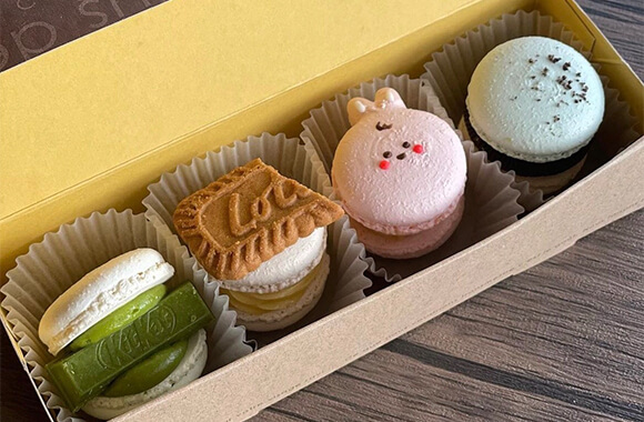 2020年12月オープン。琵琶湖畔の烏丸半島にある山小屋のようなかわいらしい外観のカフェです。店名の「REED」は琵琶湖に群生する葦の英語名に由来し、滋賀県初の完全脱プラスチックカフェとして環境に配慮した運営を行っています。看板スイーツはこだわりのバタークリームをたっぷり挟んだぷっくりシルエットのトゥンカロン。琵琶湖博物館にちなんだナマズ型マカロンもキュートで人気です。香り高いカレー、パニーニ、サンドイッチなどフードメニューも充実。夏季には口溶け軽やかな糸かき氷、琵琶湖をイメージしたビワコブルーソーダも登場します。テラス席ではペット同伴可能でワンちゃん用メニューも用意。JR草津駅西口からバスで約14分「グリーンプラザ烏丸」下車徒歩約7分、無料駐車場完備。