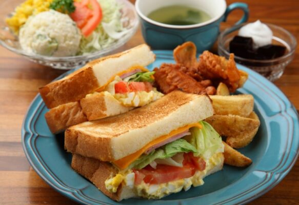 年齢や性別を問わず誰もがくつろげる空の下のような空間を目指してオープンした「空乃珈琲」は、地元で愛される人気の喫茶店です。約100席を誇る広々とした店内は開放感たっぷりで、全席にコンセントを完備しているため読書や作業にも最適です。挽きたての香り高いコーヒーとともに、バリエーション豊富なモーニングやボリューム満点のサンドイッチが楽しめます。特にSNSで話題沸騰中のテイクアウト限定フルーツサンド「空乃サンド」は、季節のフルーツをたっぷり使った華やかな見た目が人気で、店名にちなんで空にかざして写真を撮るのがおすすめです。健康サラダモーニングやホットサンドモーニングなど朝メニューも充実しています。JR草津駅から車で約8分、37台収容の駐車場を完備しています。
