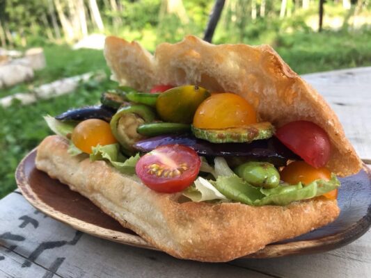 店内にはベーコンエピなどの食事系パンから、スイーツ系パンまで豊富に並び、どれも石窯で焼き上げた香ばしさが味わえるのが魅力。豆乳ソフトクリームなどの軽いスイーツもあり、小腹満たしにもぴったりです。テイクアウトはもちろん、外の休憩スペースでそのまま味わうのもおすすめ。