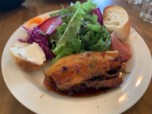 人気メニューのカフェラテは、やわらかなミルクの甘みとコーヒーの香りが絶妙で、ほっと一息つきたい時にぴったり。豚バラ肉のバルサミコ煮は、コクのある味わいとやわらかな食感が魅力で、ランチにも満足感のある一皿です。キッシュや野菜のお料理も評判で、どれも丁寧に作られた優しい味わいが楽しめます。