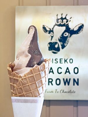 ニセコ町曽我にある「CACAO CROWN」は、世界中から厳選したカカオとニセコ・髙橋牧場の新鮮な牛乳を組み合わせたチョコレートスイーツを楽しめる専門店。木目調の落ち着いた店内には甘いカカオの香りが広がり、訪れた瞬間から心がときめくチョコレートカフェです。ショップも併設されており、お土産探しにもぴったり。